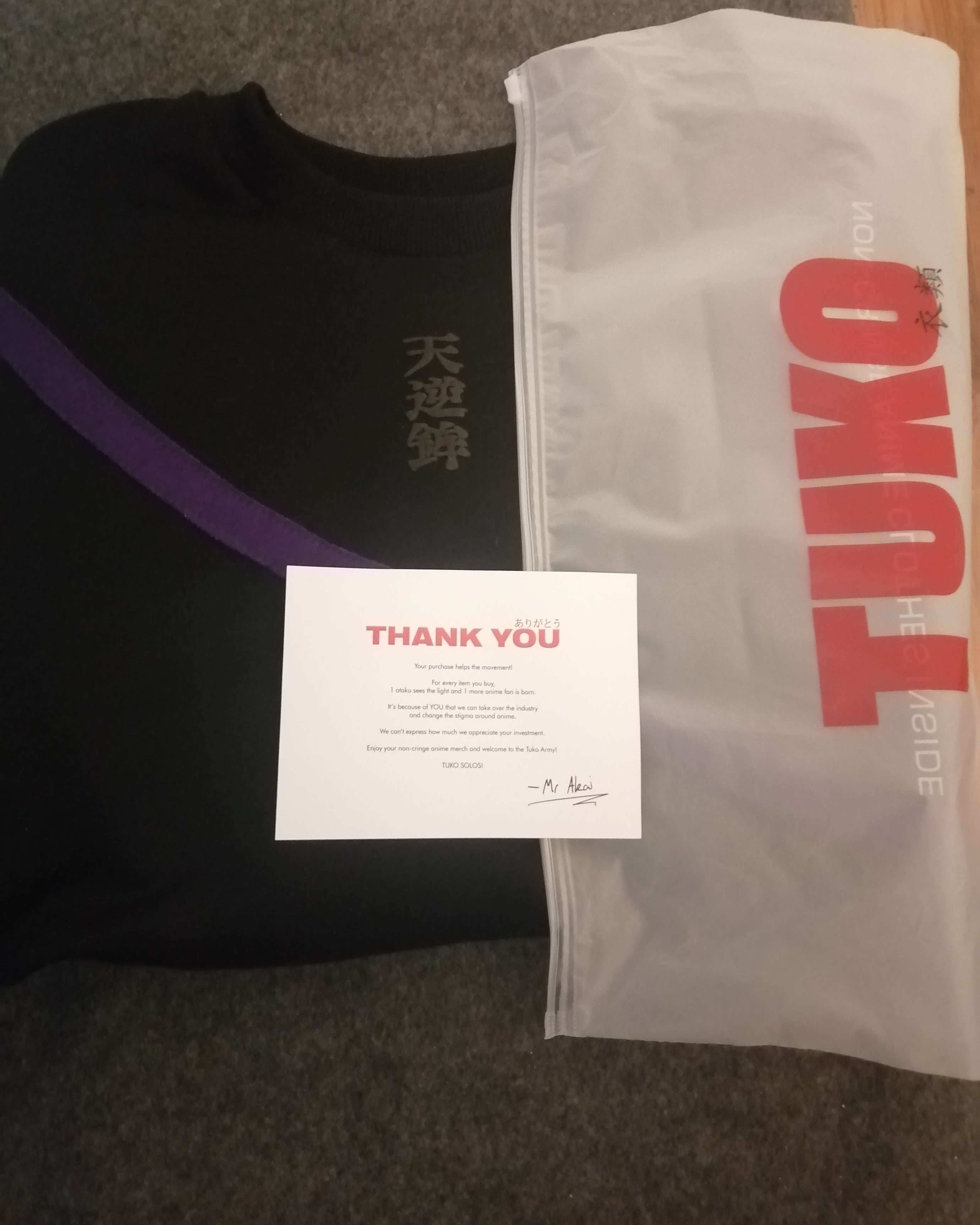 Really satisfied from my purchase, Thanks mr.Akai. Tuko solo. I’ve got many compliments for m’y hoodie from anime watcher and non anime watcher, really love it